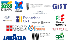 DISAFA – Università degli Studi di Torino, CCIAA – Camera di Commercio Industria Artigianato Agricoltura di Torino, Fondazione CRT, Consiglio Regionale del Piemonte, GIST – Giornalisti Italiani Stampa Turistica, UNA – Aziende della Comunicazione Unite, AIS – Associazione Italiana Sommellier – Alpitour World, Somewhere Tour, Aspergeronline.org, Lavazza, EDIT, CPD-Consulta per le persone in difficoltà-.